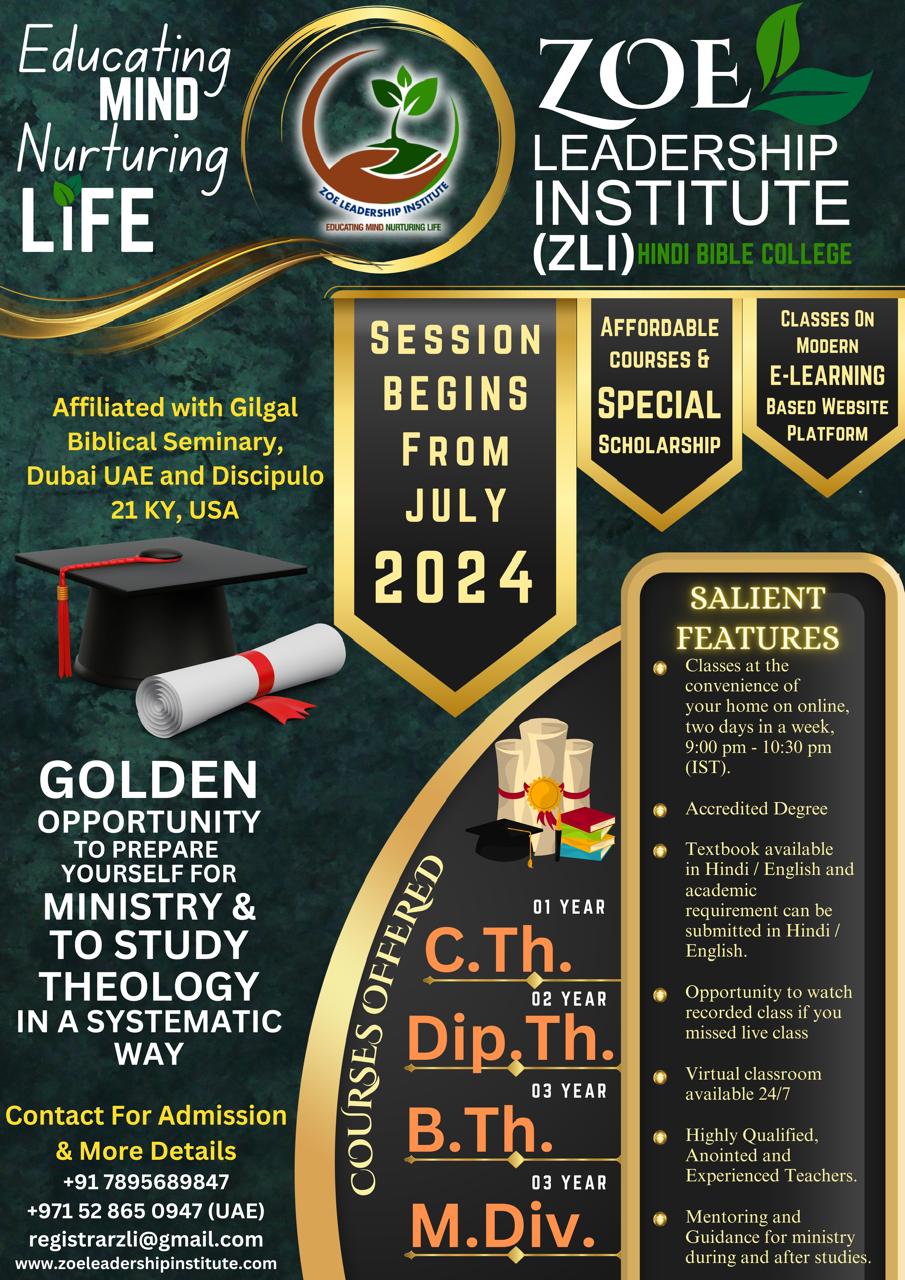 @2025 ZOE Leadership Institute is a world-class leader in online theological education in Hindi. Based in India and available online around the world.